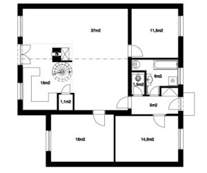 Nosná konstrukce střechy tvořená dřevěným vázaným krovem stanové střechy. Řezivo je celoplošně ošetřeno proti hnilobě a plísni. Jako pojistná folie je použita vysoce difusní kontaktní folie. Na vázané konstrukci je zavěšen sádrokartonový strop se zateplením. Vestavěná část půdního prostoru je v základním standardu pouze jednostranně opláštěna sádrokartonem s tepelnou izolací.